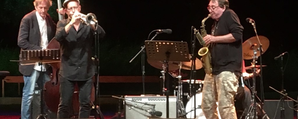 S’alternent ici des morceaux tantôt festifs/envolés/chaotiques, tantôt doucereux/nocturnes/impalpables (mais toujours bouillonnants). Les échanges Douglas/Zorn sont particulièrement savoureux ; et leurs solos respectifs sont tous étourdissants (dans le bon sens du terme) et complètement uniques. Deux putains de maîtres à l’oeuvre, sur la corde raide presqu’en tout temps, qui ont une chimie du diable. Douglas est plus feutré et chaleureux. Zorn, plus tourmenté et viscéral. Puis la section rythmique (Cohen/Baron), splendide et essentielle, réussit à faire tenir toute cette masse sonore hirsute, lui permet de garder pied sur Terre, l’empêche de se perdre complètement dans un firmament cosmique… Je me dois de souligner le jeu exceptionnel de Baron, qui réussit la délicate tâche « d’ancrer » les délires de Zorn/Douglas mais qui « danse » aussi rythmiquement à travers tout ça, faisant des entrechats majestueux tout en propulsant la cadence primaire. Probablement le meilleur batteur que j’ai vu en spectacle (à égalité avec Christian Vander de Magma).