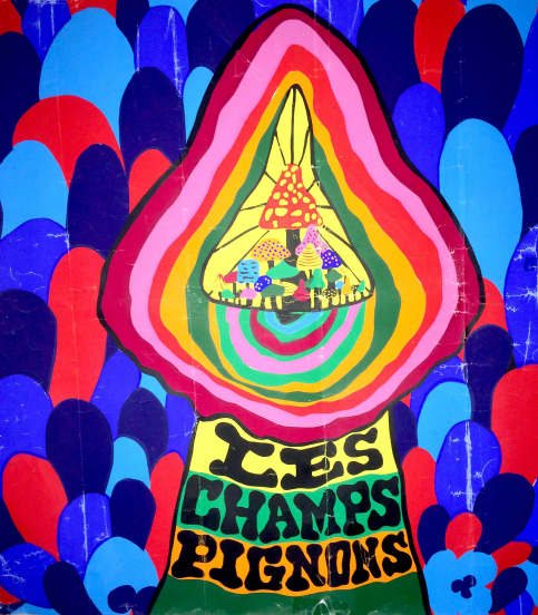 En frais de trésors sonores enfouis, le Québec n’est pas en reste… Dans la période fin-60s/début-70s, on retrouve bon nombre de sorties d’albums à très petit tirage, parutions plus ou moins officielles, private presses obscurs à souhait, etc… Certains chercheurs-archéologues musicaux de renom (dont François Zaidan et Julien Charbonneau, pour ne nommer que ceux-là) vont aux 4 coins de la province, de ventes de garage aux sous-sols d’églises (plus ou moins catholiques) à la recherche constante du nouveau saint-graal psychotronique. Et un des joyaux les plus convoités lors de ces pérégrinations, c’est sans conteste ce premier (et unique) album des Champignons, groupe de rock psychédélique de Shawinigan… Le monsieur Zaidan précédemment mentionné a jadis eu la main chanceuse et a réussi à excaver une quantité astronomique de copies d’un coup (il en a encore la larme à l’oeil quand il en parle ; et je le comprends !).